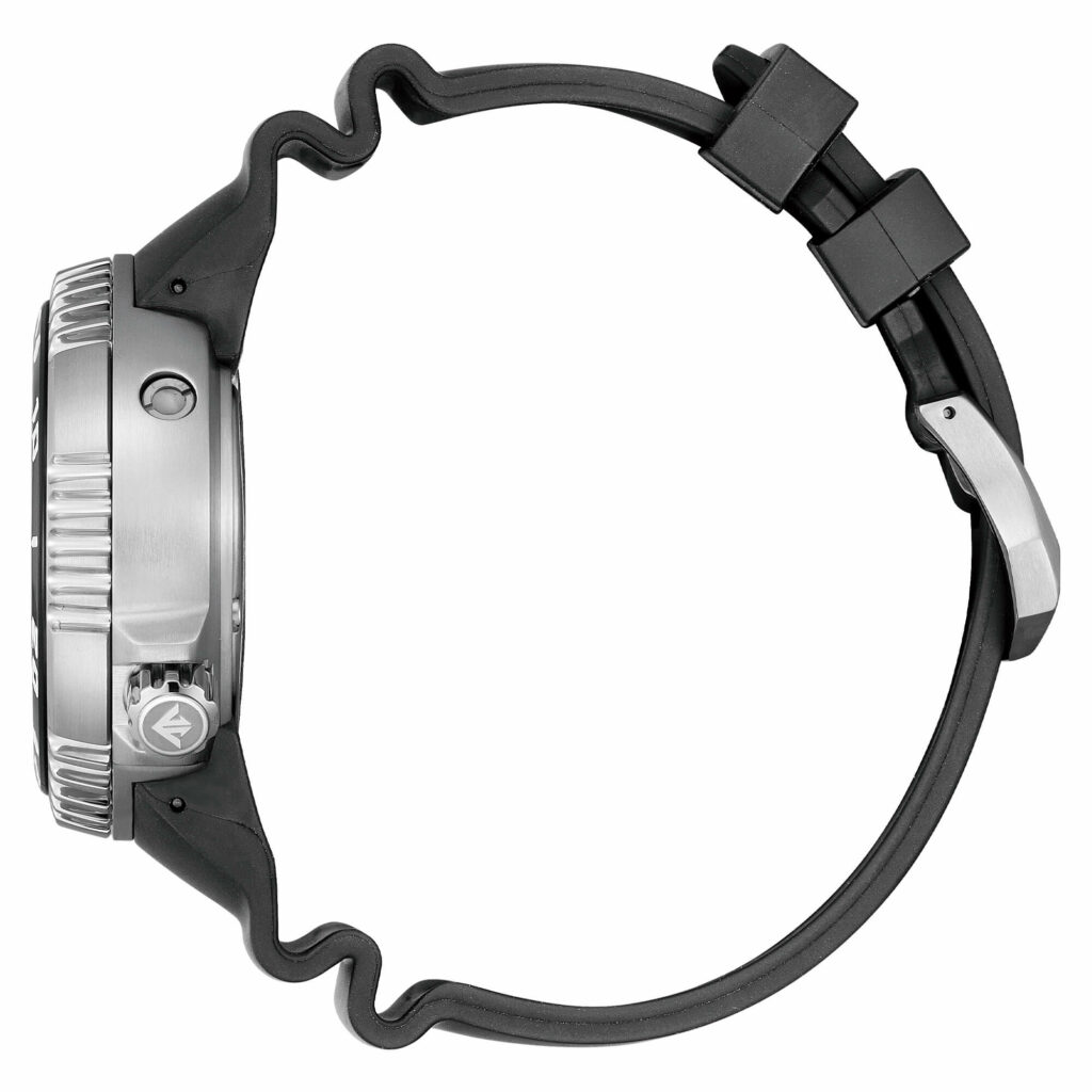 Caja de acero, 16,3mm. de grosor con fondo y corona cerrados a rosca. Correa de poliuretano biomass BENEBIOL con prolongador extra para uso con neopreno. Bisel giratorio unidireccional. Equipado con válvula de escape de helio. Cristal zafiro plano con tratamiento antirreflejos. Luminous en agujas e índices. Esfera degradada fabricada con plástico reciclado. WR 30 bar.